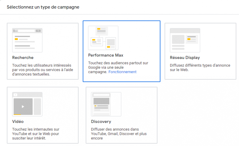 Ces campagnes sont diffusées sur l’intégralité du réseau Google (Search, Display, Discover, Gmail, Maps, YouTube).
