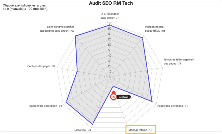 Avec ce graphique en forme de radar inclus dans le rapport d’audit RM Tech, vous voyez immédiatement si le maillage est insuffisant (comme dans cet exemple) :